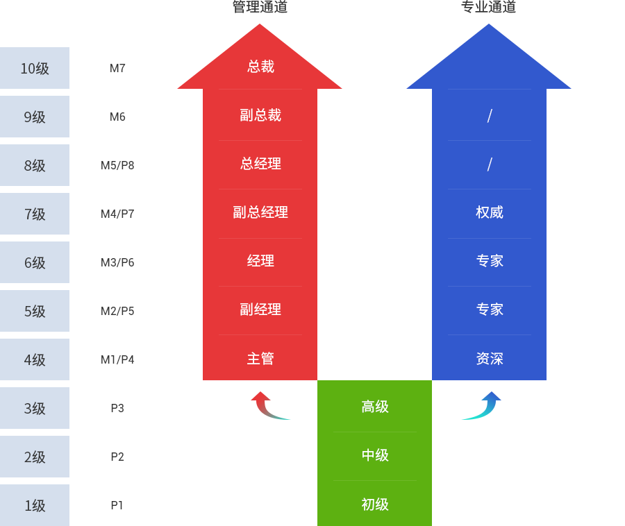 公司設置管理和專業(yè)晉升雙向晉升發(fā)展通道,明確各個崗位級別員工的能力素質要求,為員工提供足夠的發(fā)展空間及機會,以實現員工職業(yè)發(fā)展與公司經營發(fā)展雙贏。
